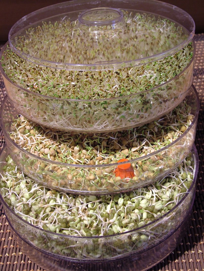 Dno misky naplňte vybranými semínky cca z 30 % plochy. Poté propláchněte, přikryjte víkem, postavte na tmavé místo a zalévejte vodou ráno a večer. Přebytečnou vodu, která už protekla všemi patry, pravidelně vylévejte.